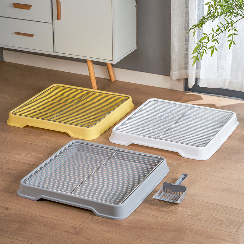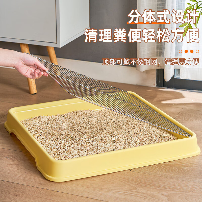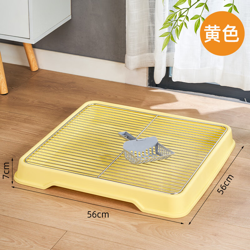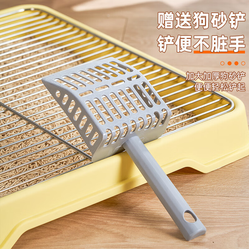 大号狗厕所平板式不锈钢网防踩屎狗便盆中小型犬大型犬宠物狗尿盆 黄色 不锈钢网距15mm