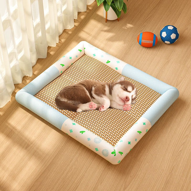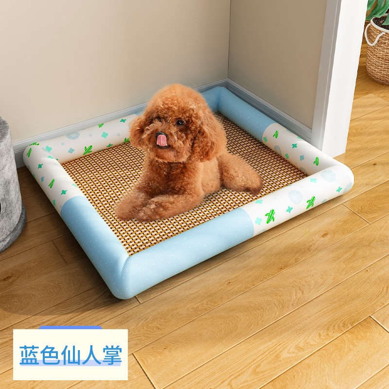 蔻丝狗窝夏季狗狗冰垫猫窝夏季凉席冰垫宠物四季通用泰迪狗窝小型犬宠物大型犬狗垫猫垫子 蓝色仙人掌 S码 40*30*6 【7斤内宠物适用】