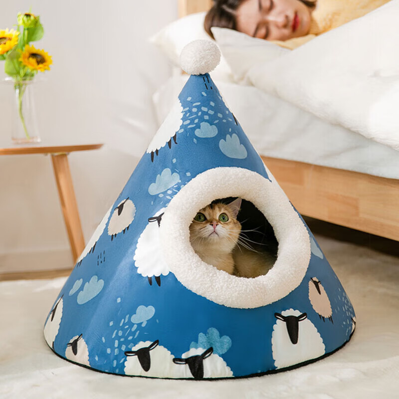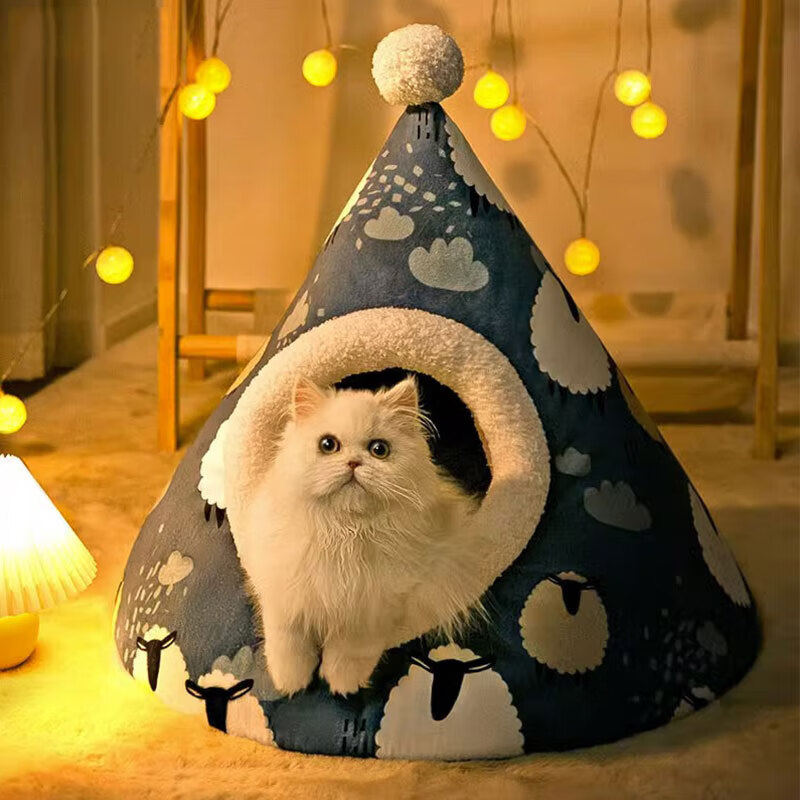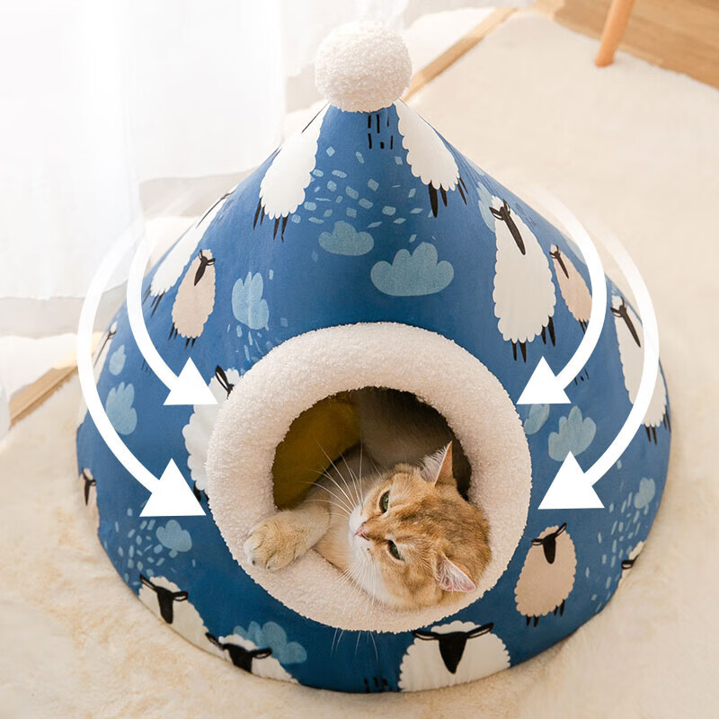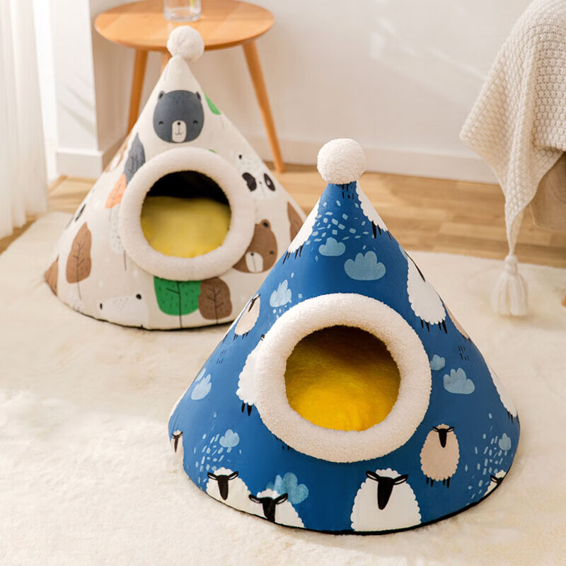 嬉皮狗猫窝四季通用蒙古包半封闭式猫床猫屋猫窝冬季保暖猫咪窝宠物用品 灰色小熊 M(适用于12斤内)