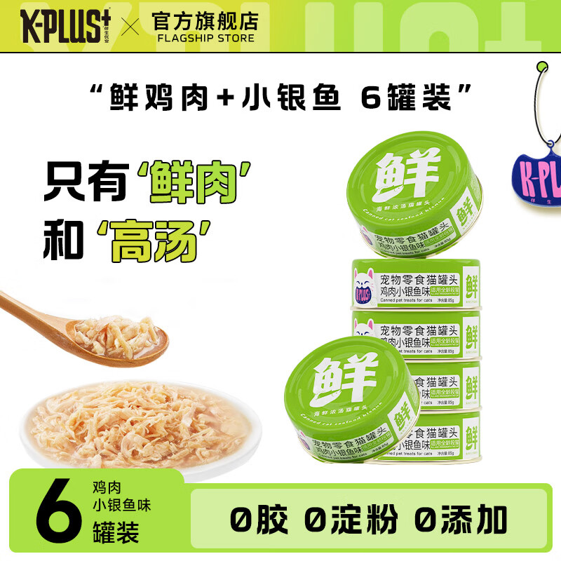 K-PLUS 猫罐头主食湿粮罐头猫咪零食 鲜肉浓汤补水鸡肉整箱 小银鱼 鸡肉味6罐