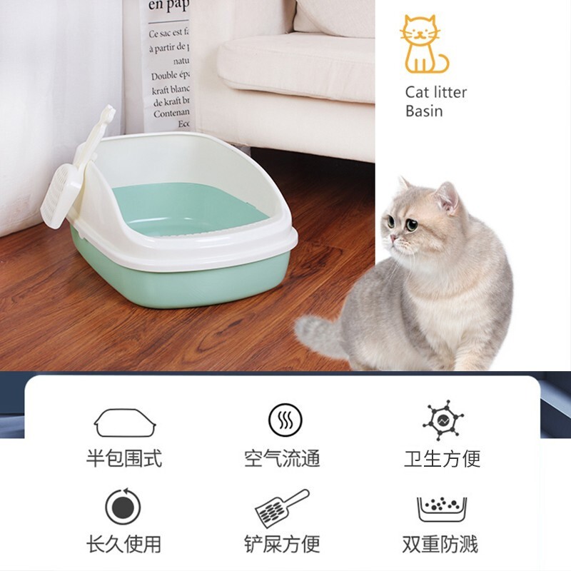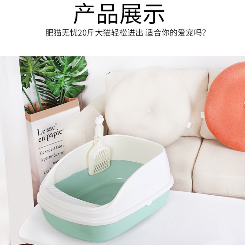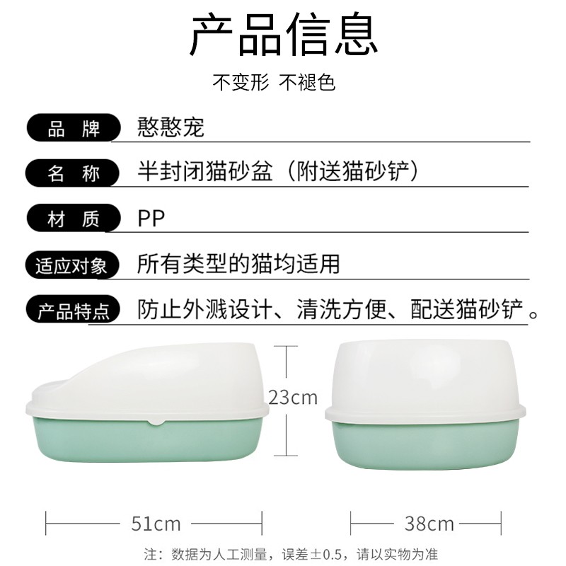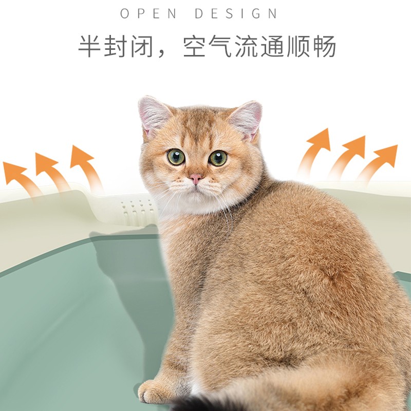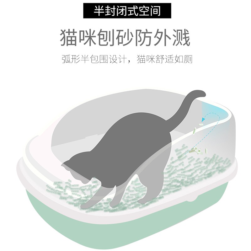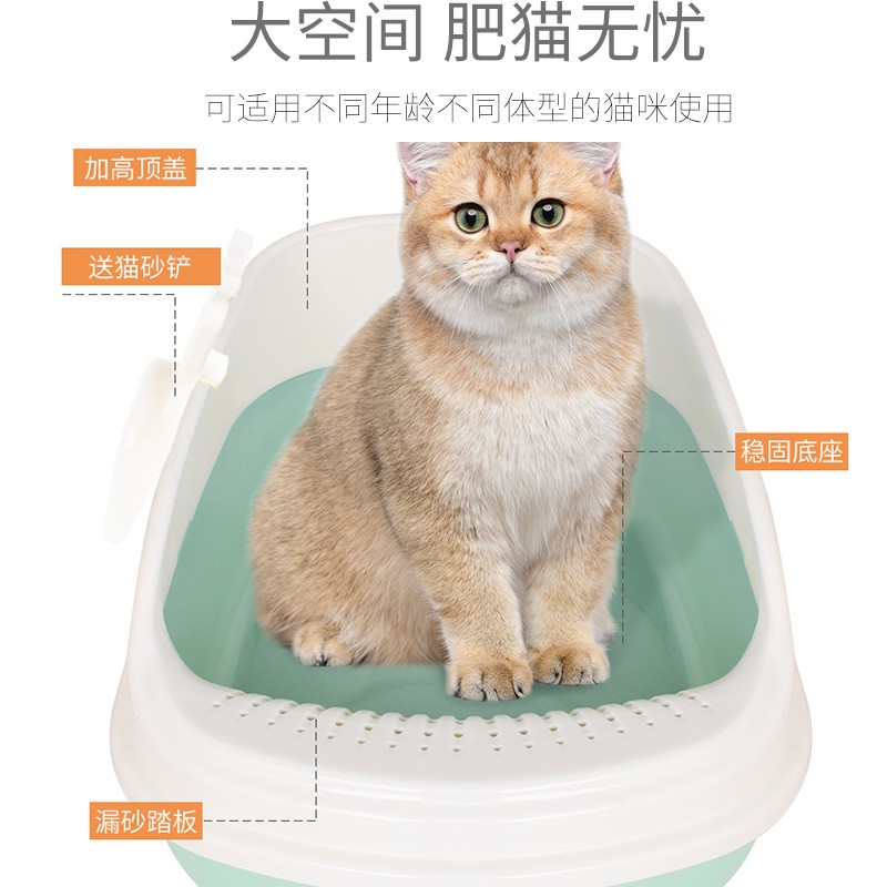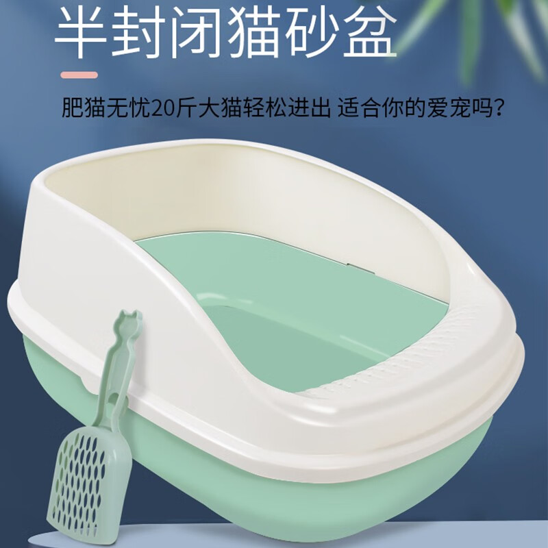 憨憨宠 猫砂盆 猫厕所大号半封闭式猫沙盆宠物猫便盆幼猫成猫防外溅猫屎盆猫咪用品 茶青绿 大号