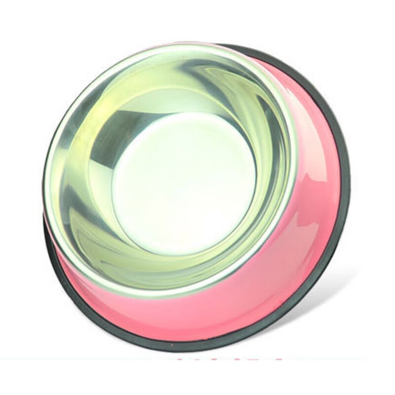 新宠之康狗碗猫狗盆狗食盆猫碗宠物用品碗小型中型大型犬不锈钢防滑饭盆 宠物碗-粉色 1号小——5号大哦