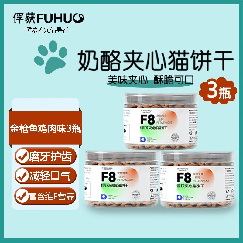 俘获F8夹心小猫饼干营养酥脆小猫磨牙棒成幼猫粮饭伴侣护齿磨牙牛磺酸美味零食 金枪鱼鸡肉味*3瓶装
