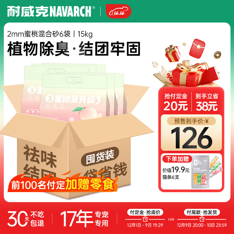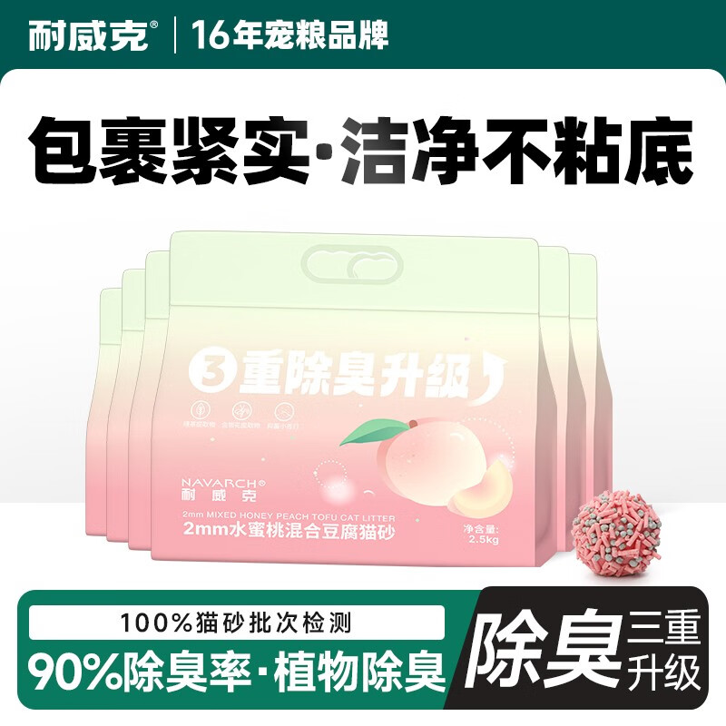 耐威克 水蜜桃豆腐猫砂成猫幼猫混合猫沙 去味除臭结团 可冲厕所 混合砂丨30斤