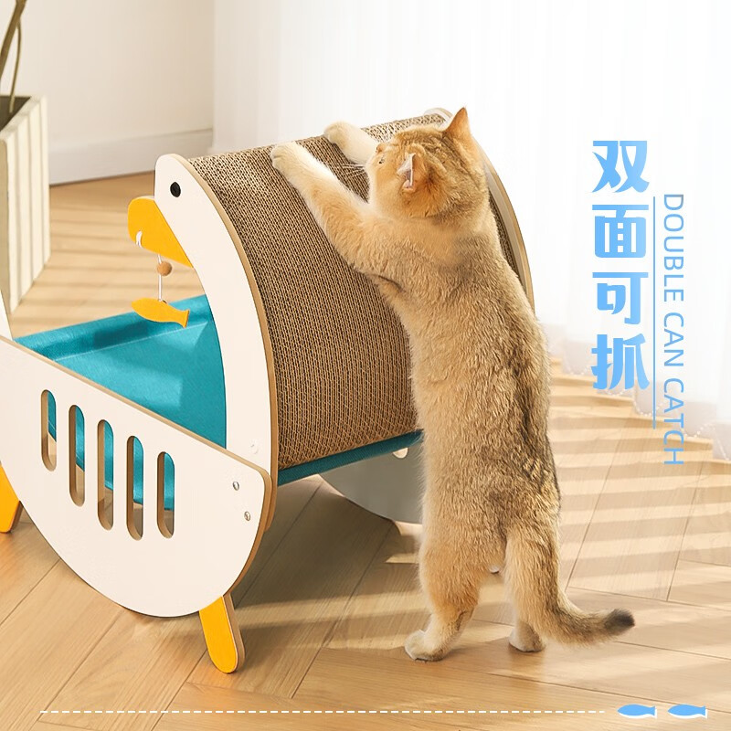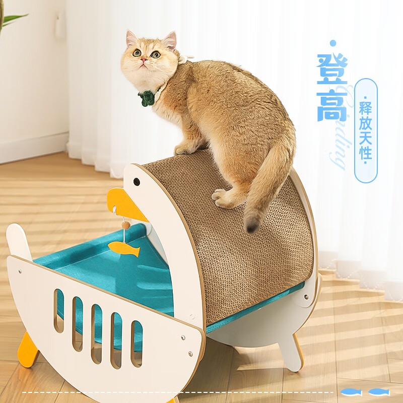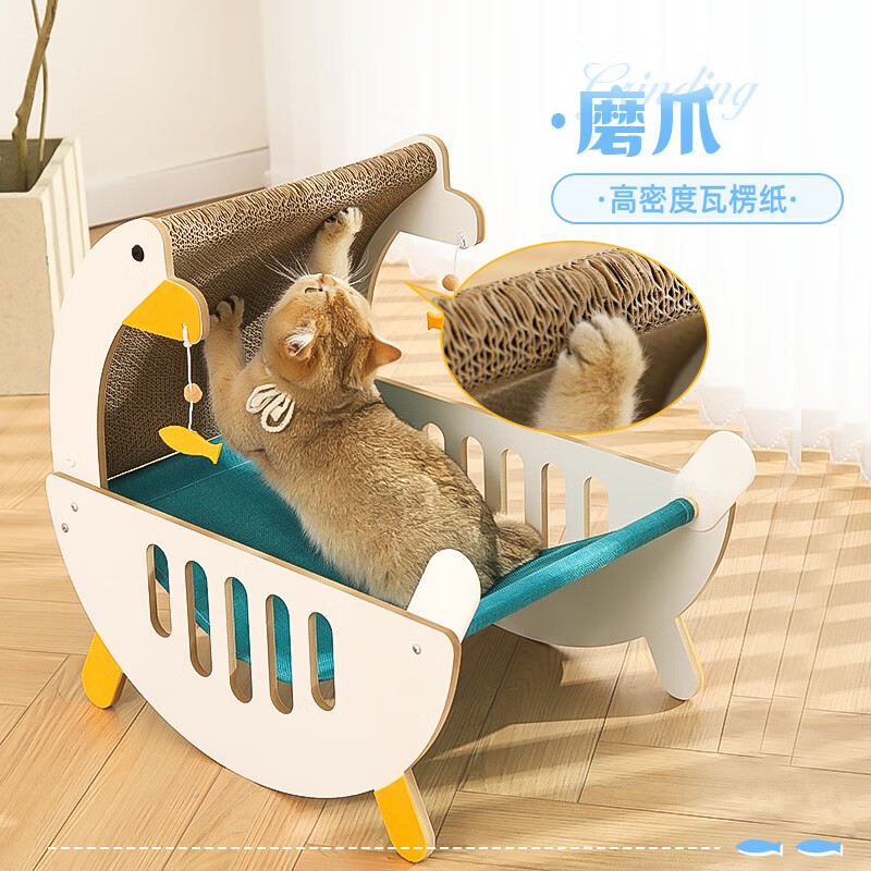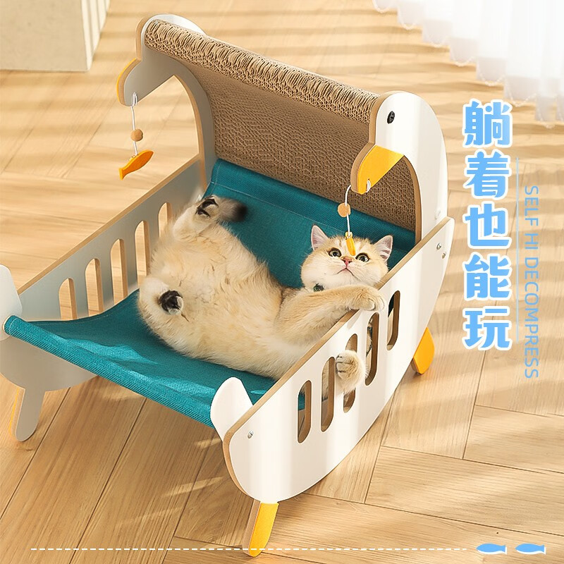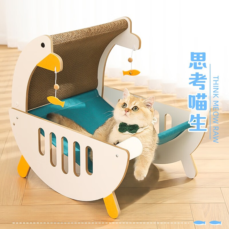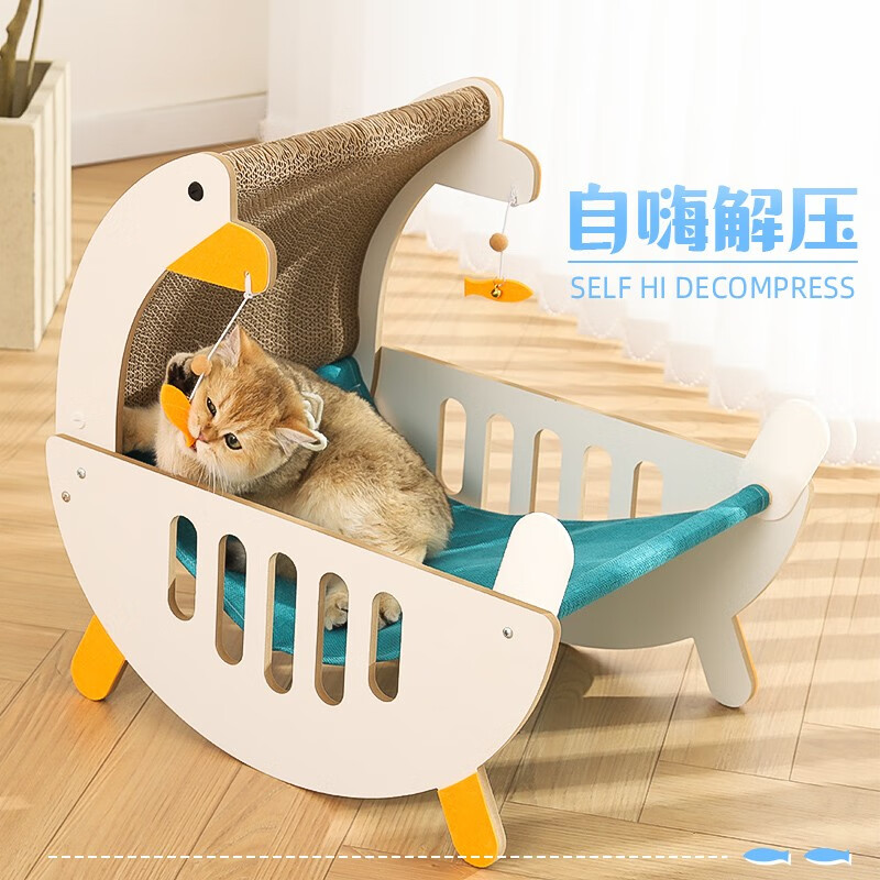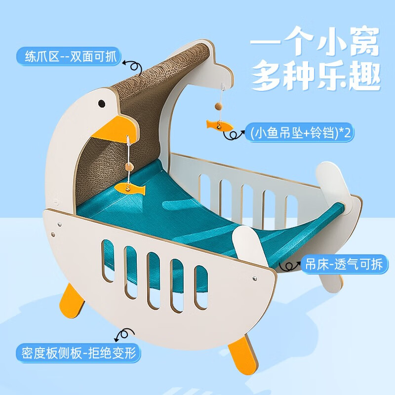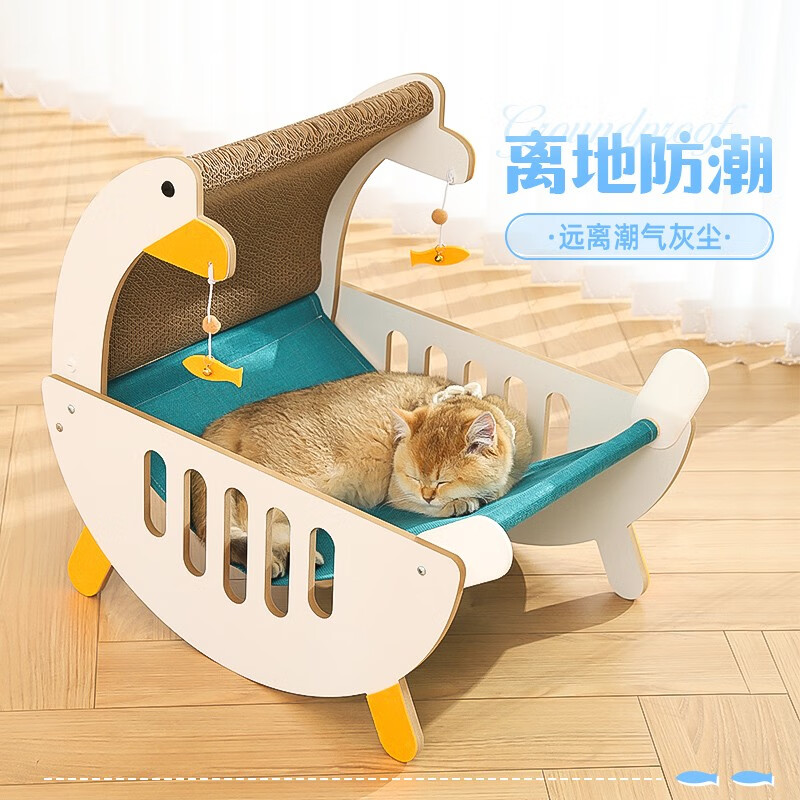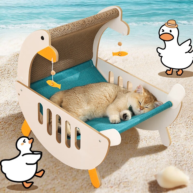 华元宠具(hoopet)猫抓板夏季吊床猫窝可拆洗替换睡觉磨爪自嗨猫床防潮耐抓冰垫四季通用猫玩具 呆呆鹅猫床-20斤内