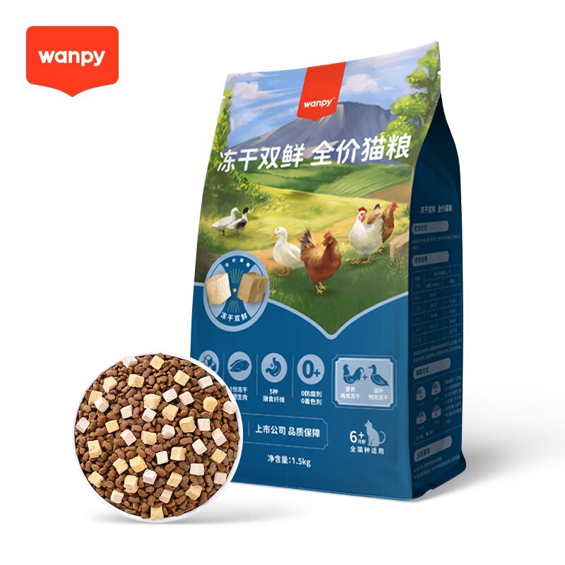 顽皮(Wanpy)全价双鲜猫粮 冻干鸡肉鸭肉成猫干粮宠物双拼粮 添加冻干鸡肉 鸭肉1.5kg(升级款)