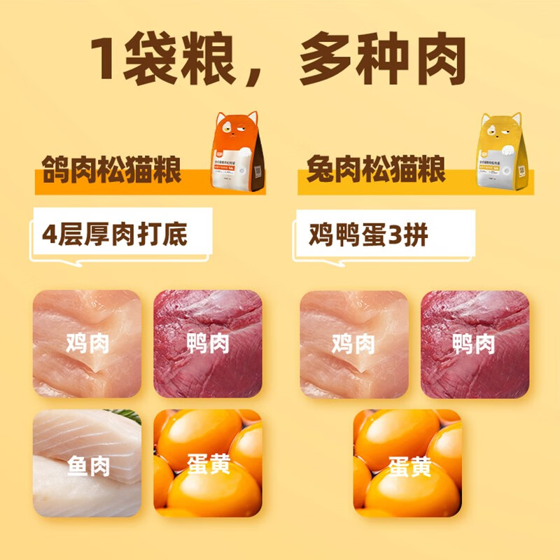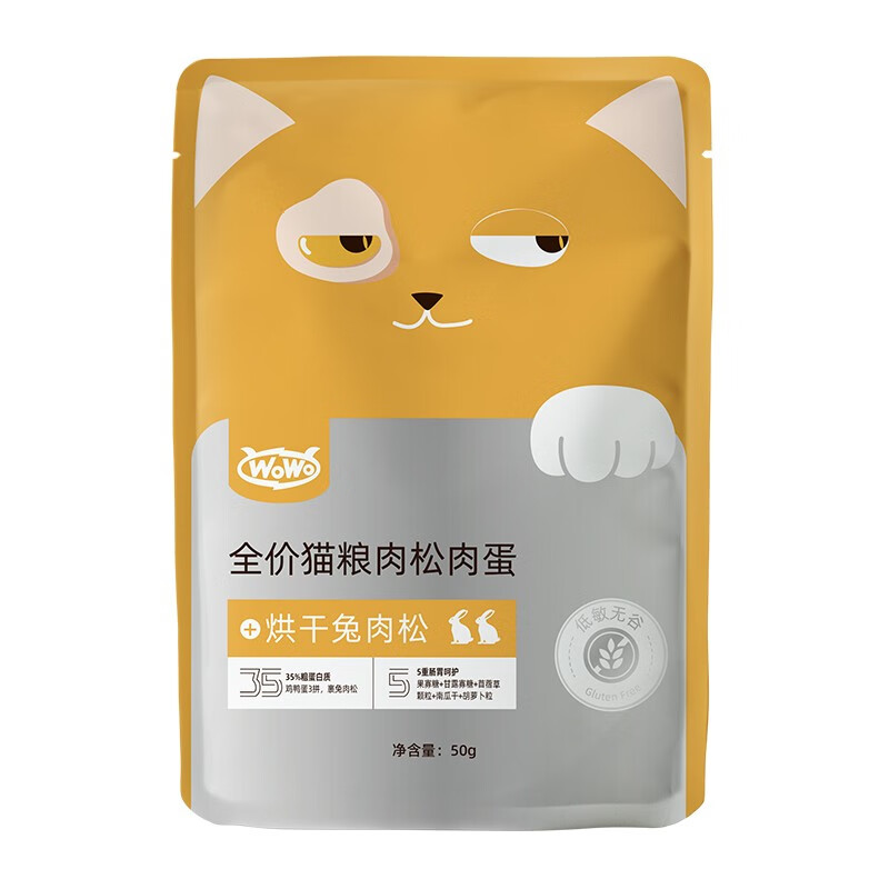 喔喔猫粮 成猫幼猫通用全价国产无谷低敏营养高蛋白猫粮 兔肉松猫干粮 试吃装50g*5袋