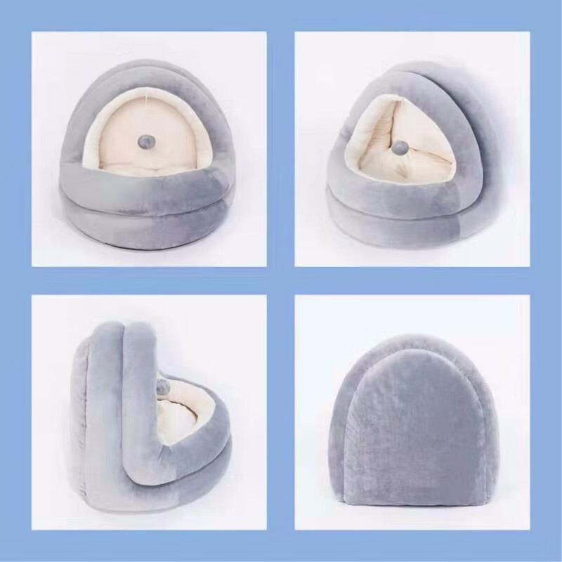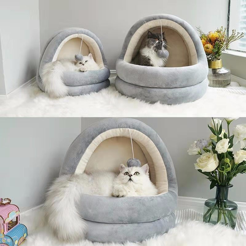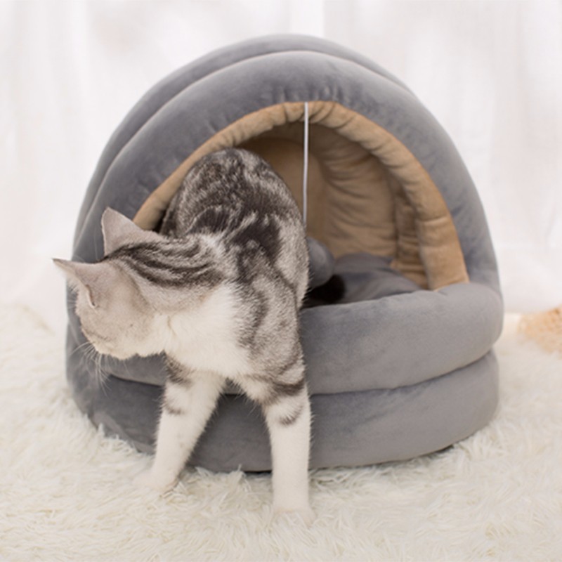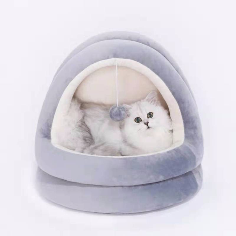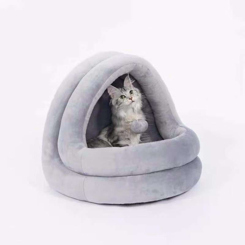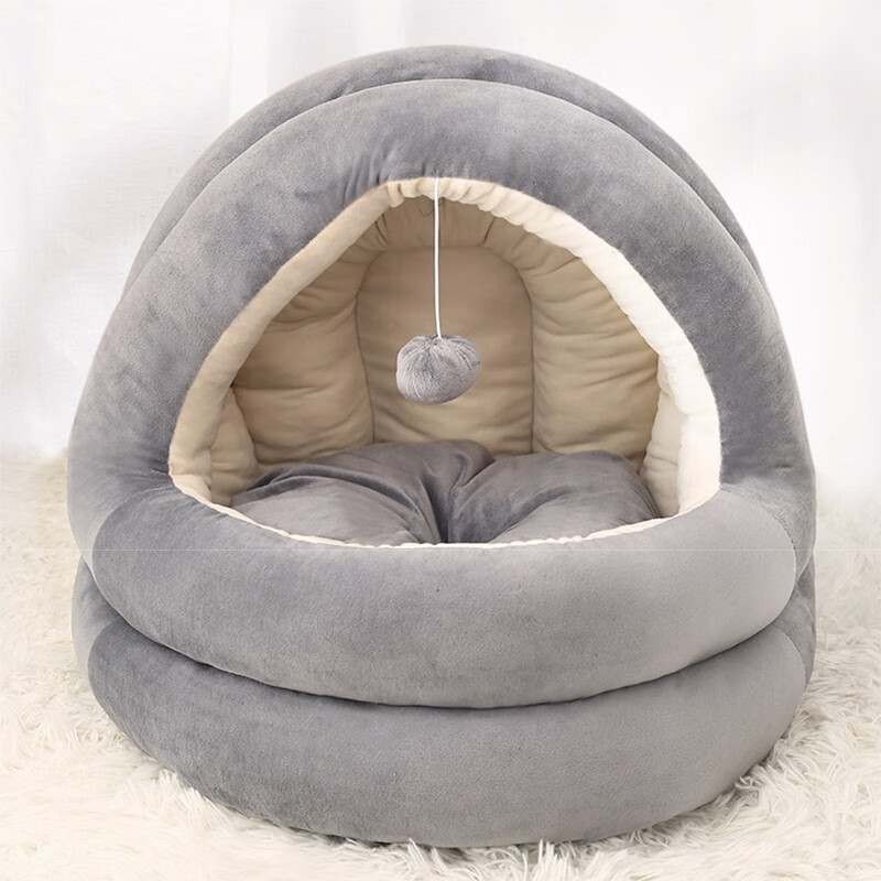 迪普尔 猫窝狗窝超大保暖冬季宠物猫咪狗狗毯垫子猫舍睡袋幼猫被窝比熊泰迪半封闭屋猫床窝用品 吊球灰色款L(建议16斤猫咪/10斤狗狗) *