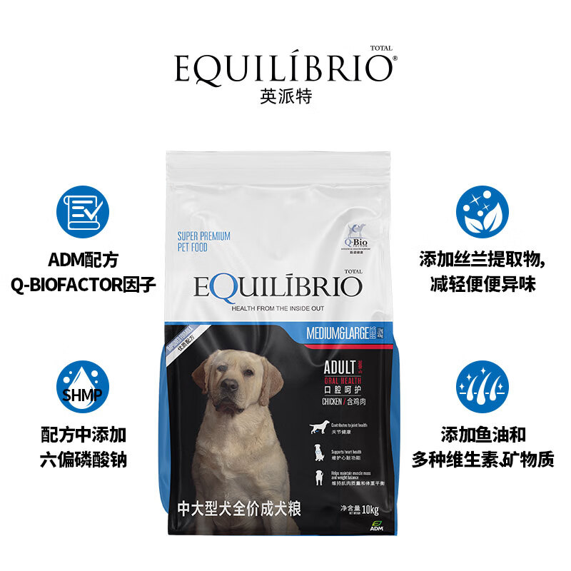 TOTAL EQUILIBRIO巴西淘淘狗粮 中大型犬成犬狗粮10kg英派特泪痕鱼油美毛通用型 中大型犬 成犬粮10kg