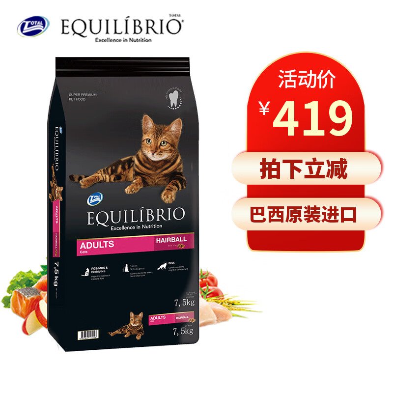 巴西淘淘Total equilibrio 力派均衡进口成猫粮 改善泪痕挑嘴天然成猫粮 7.5kg