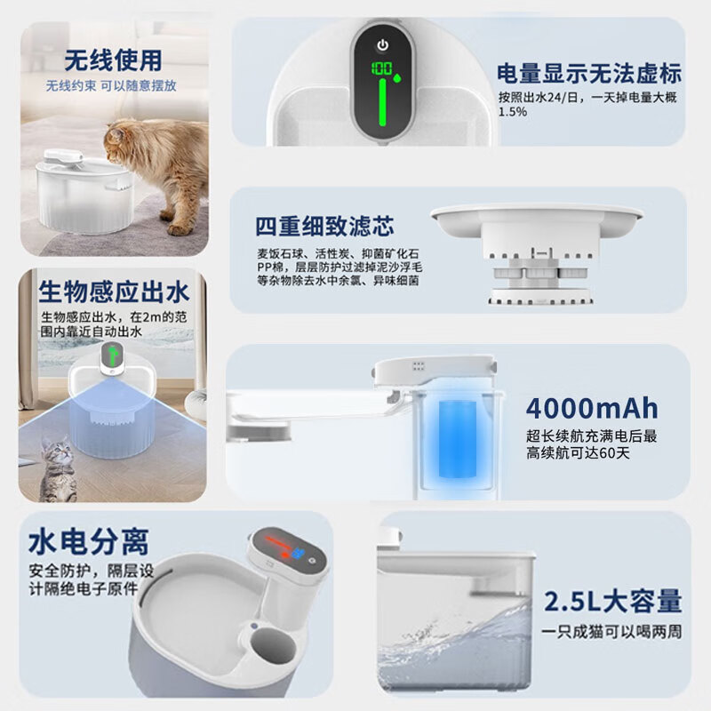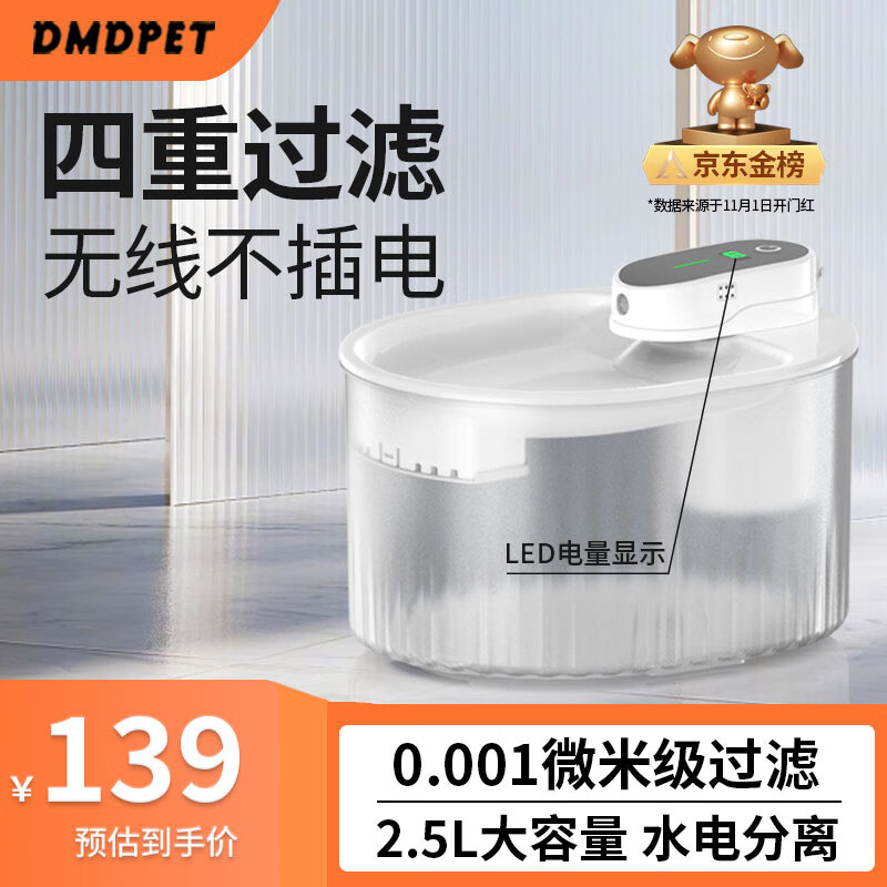 迪米兜宠物饮水机猫咪无线过滤自动循环活水狗狗不插电饮水器