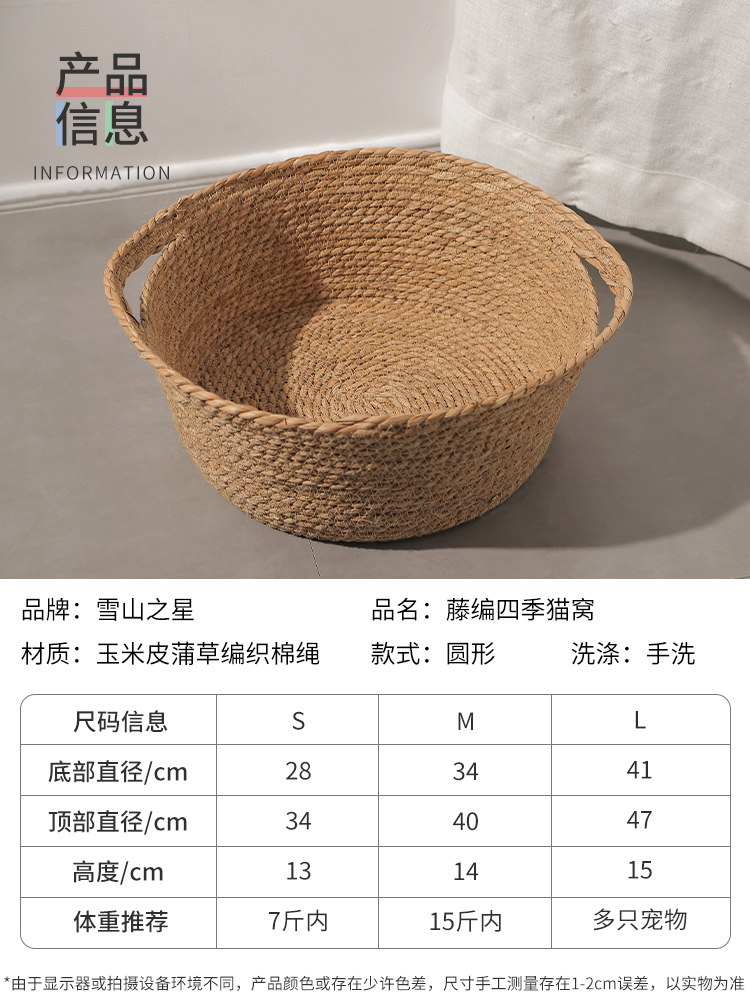 猫窝藤编四季通用夏天凉窝垫子狗窝网红猫抓板宠物床猫咪用品夏季