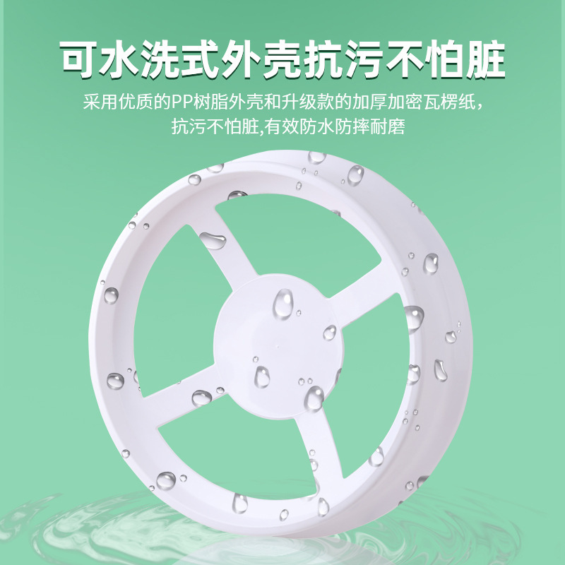 新款大号猫抓板罗盘圆形可替换瓦楞纸塑料猫窝耐抓 猫用品 猫玩具 墨绿 大号43*37*10cm