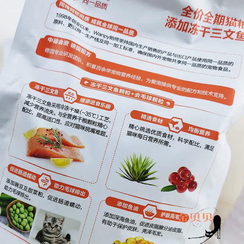 Wanpy顽皮冻干双拼全期猫粮鸡肉三文鱼增肥营养成猫幼猫发腮1.5kg