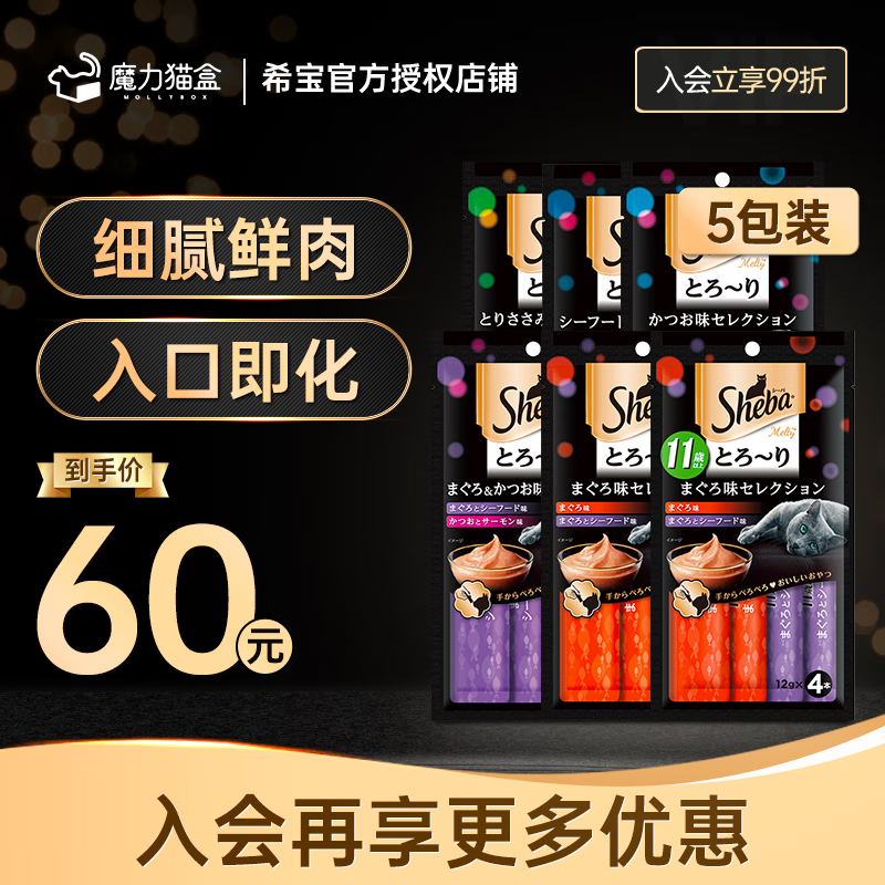 希宝(Sheba)猫条 进口猫条 湿粮猫零食成猫老年猫流质零食 48g 【5包共20支】大龄猫吞拿鱼海鲜
