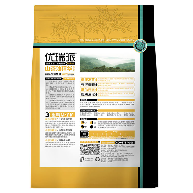 优瑞派猫粮 幼猫成猫山茶油精华猫咪主粮 全价通用粮 海洋鱼味0.5kg1斤