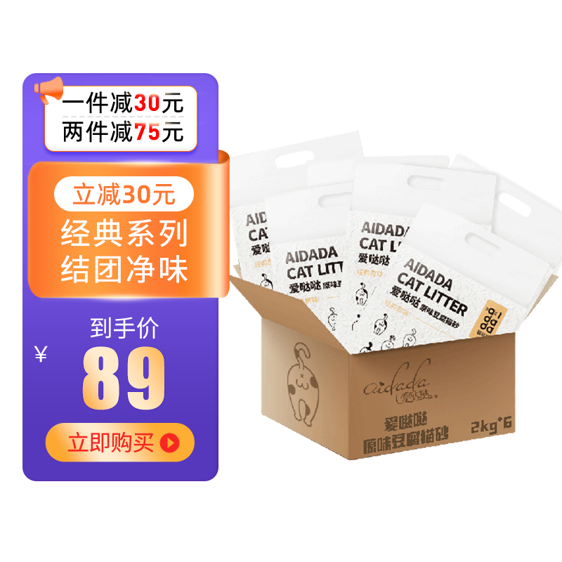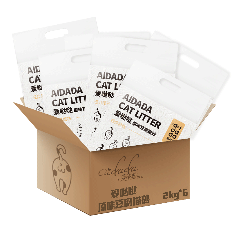 爱哒哒 猫砂混合猫砂 2.5KG*6包活性炭 芝芝茶颜豆腐猫砂混合猫沙高效吸味高效结团可冲厕所 原味豆腐猫砂2kg*6