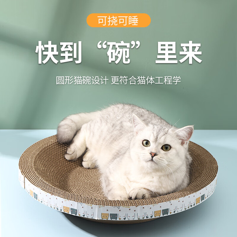猫抓板碗型猫抓盆猫玩具瓦楞纸磨爪不掉屑高密度猫咪用品猫爪板 圆形猫抓盆小号(直径35cm 高 8