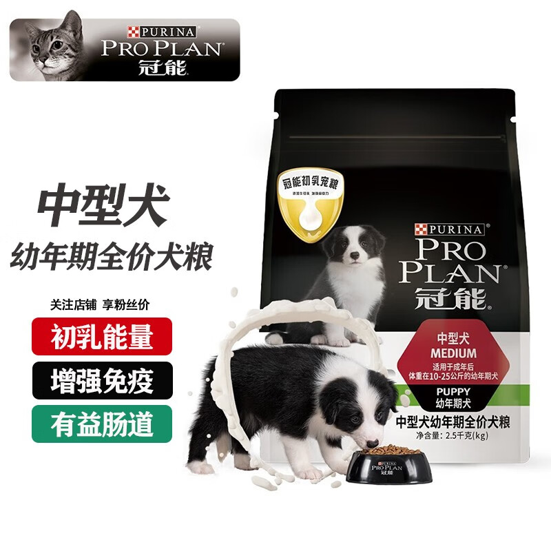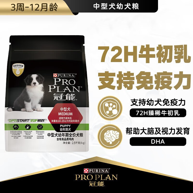 冠能(PRO PLAN)狗粮 中型犬 成犬幼犬狗粮 高消化吸收 呵护牙齿关节 幼犬粮 2.5kg