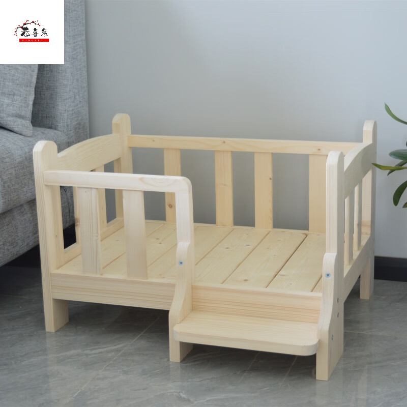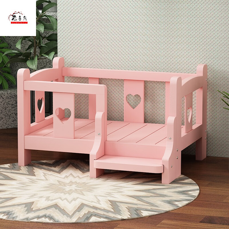 出极 宠物床狗狗木床宠物实木床狗窝粉色狗床泰迪金毛实木宠物定 原木圆款 L-大型*65cm建议55斤内
