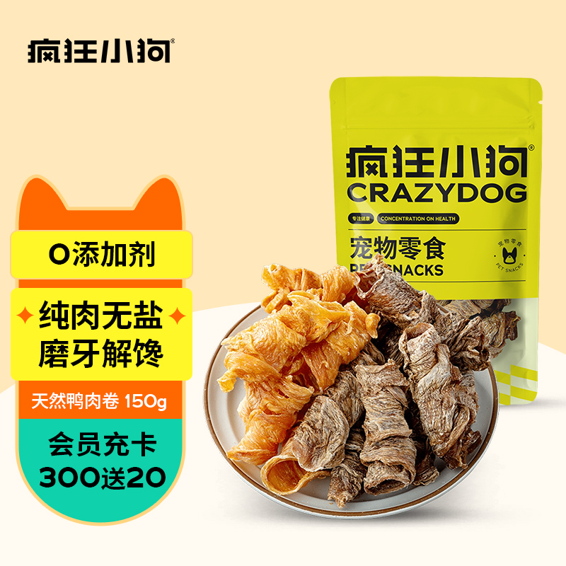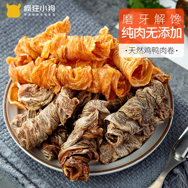疯狂小狗 狗零食金毛泰迪比熊洁齿磨牙棒宠物零食 天然鸭肉卷150g