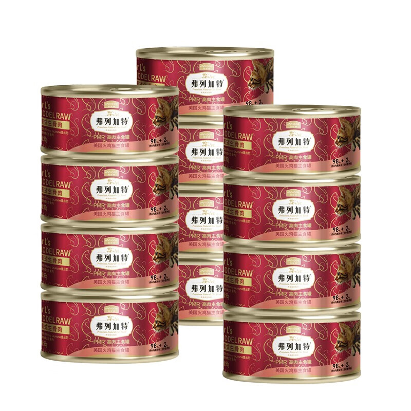 弗列加特弗列加特全价主食罐头成幼猫生骨肉无谷猫饭营养宠物零食拌粮湿粮 火鸡肉味 95g*12罐