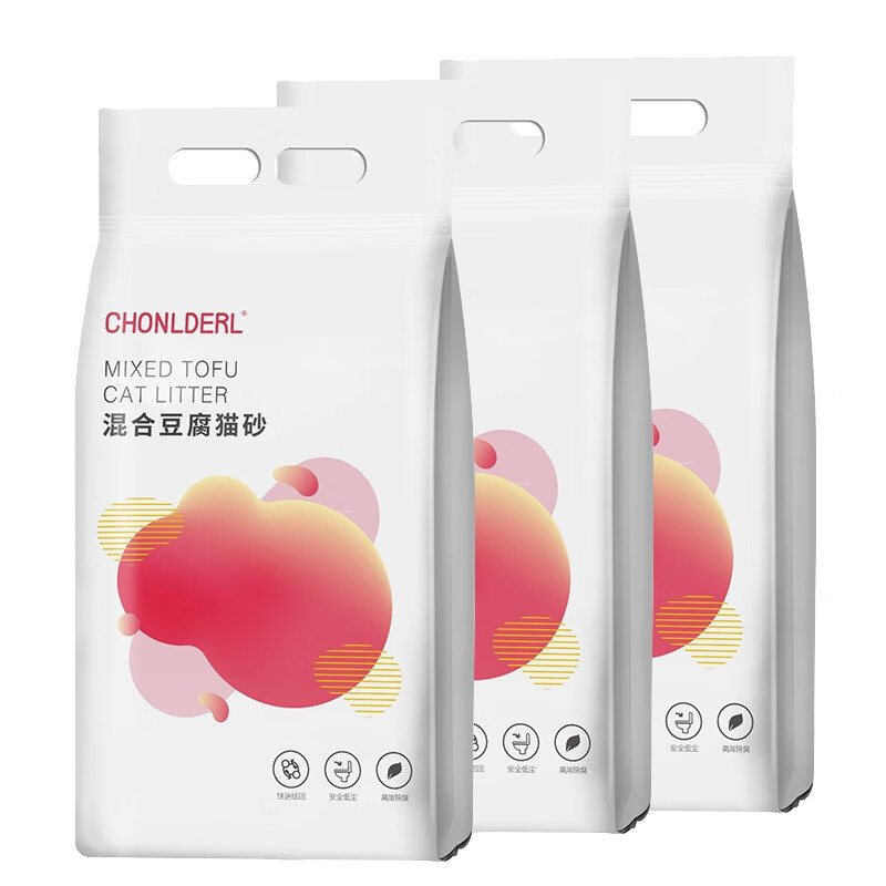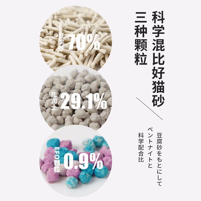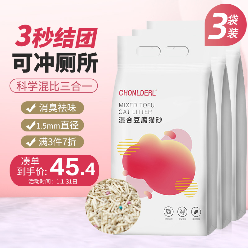 宠袋 混合猫砂 豆腐猫砂膨润土砂 高效结团臭味瞬吸无尘可冲厕所 6L*3包