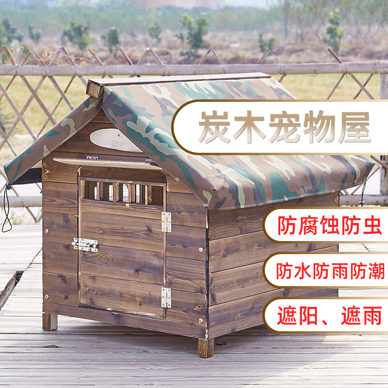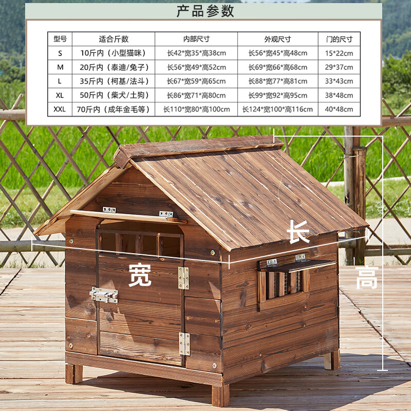 元族实木室外户外狗窝木制大型犬防雨防腐狗屋笼狗房子四季通用狗别墅 有门单窗 (单窗可左右互换) S-小型