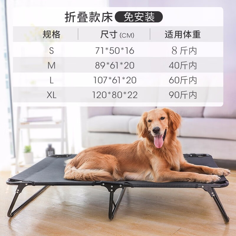 hoopet狗窝四季通用宠物室内垫子耐咬行军床狗狗沙发床边牧金毛狗床离地防潮 升级款折叠免安装行军床 XL:离地透气防潮(90斤内宠物)