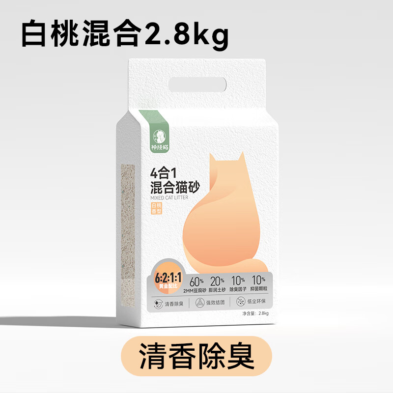 微舒绿茶混合猫砂豆腐膨润土除臭去味无尘猫沙快速结团猫咪矿石神经猫 白桃混合5.6斤 无规格