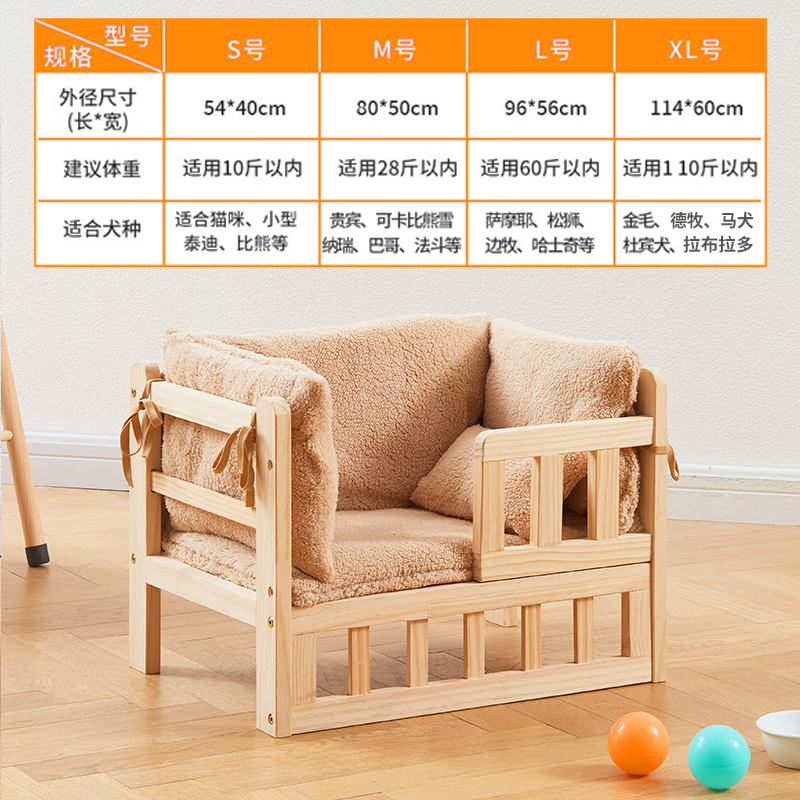 法耐 实木狗床冬季保暖犬狗窝四季通用可拆洗泰迪猫窝比熊四季通用 新款围栏床【咖啡棕色床品】 【S-猫咪/泰迪】54*40cm