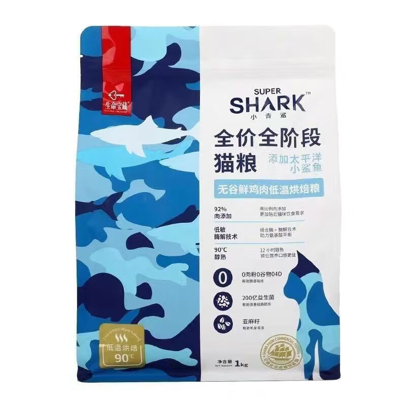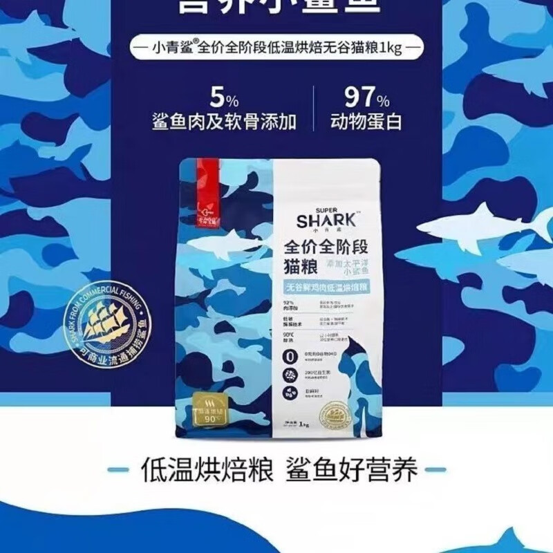 小青鲨 猫粮小鲨鱼冻干双拼肠活菌舒泪菌肉松猫粮全价成幼猫粮 无谷鸡肉烘焙猫粮1kg