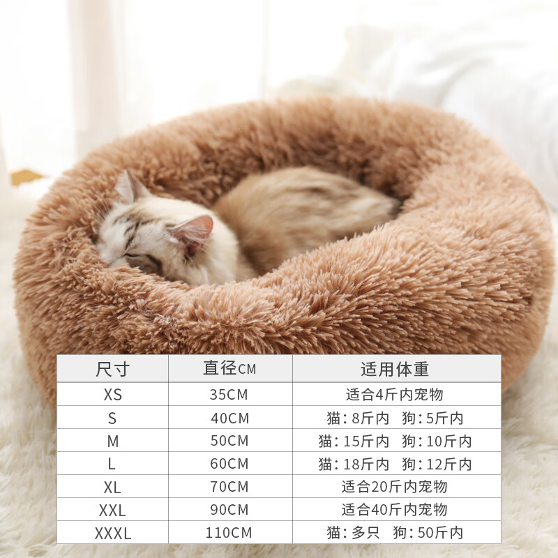 阿朗士冬季保暖猫窝网红泰迪冬天狗窝封闭式四季通用猫咪宠物猫床垫用品 保暖深睡长毛绒窝-_暖咖色 S-适合猫8斤内/狗5斤内使用(直径40cm)