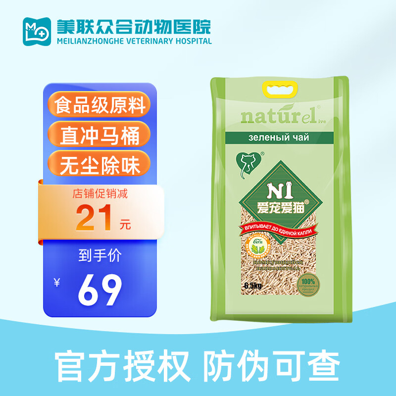 N1 爱宠爱猫猫砂n1豆腐猫砂猫沙除臭去味低粉尘绿茶活性炭猫砂强结团可冲厕所 N1 原味1.5mm 6.5kg