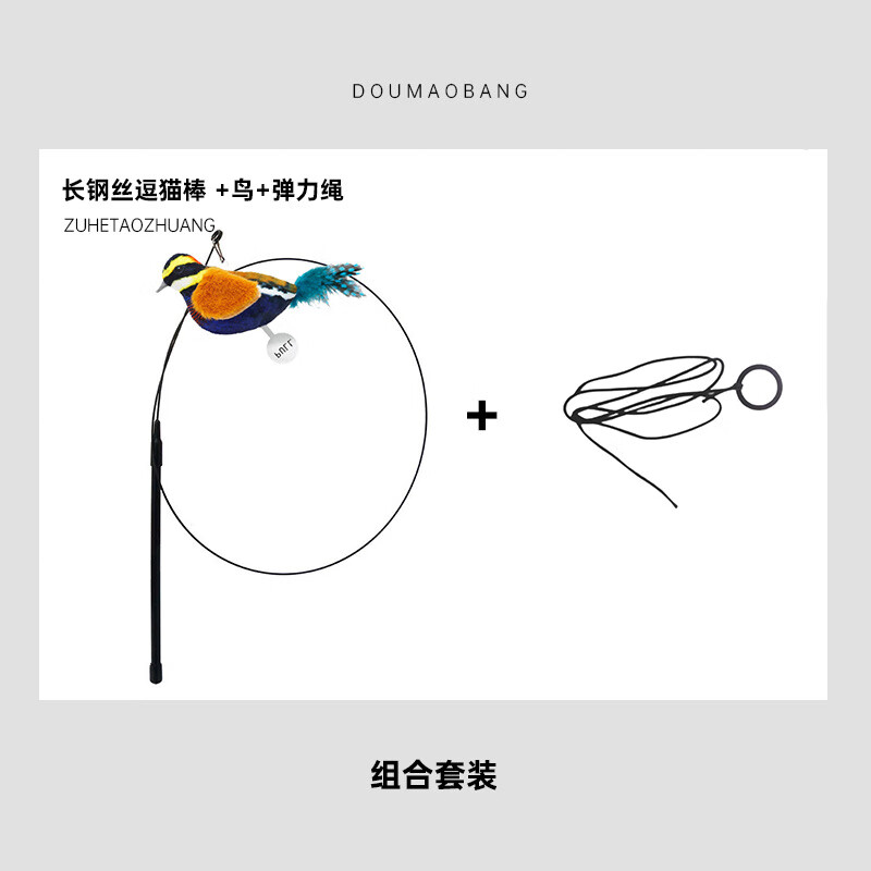 叫叫鸟羽毛逗猫棒猫玩具自嗨解闷猫薄荷幼猫猫玩具用品逗猫棒长杆 叫叫鸟【五彩色】单个 弹力绳 长钢丝
