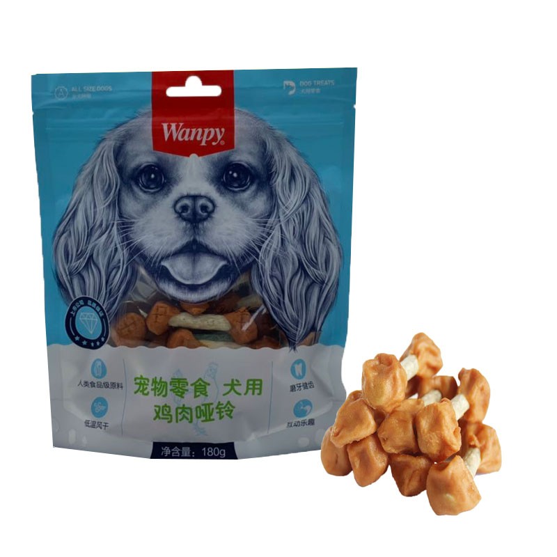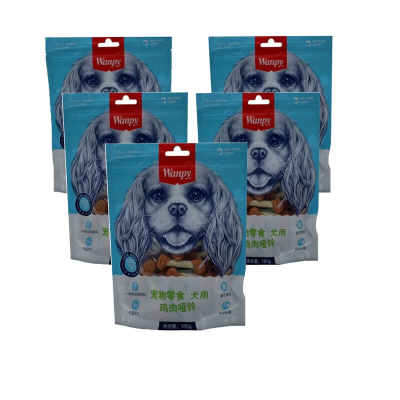 Wanpy顽皮狗零食 鸡肉哑铃鸡肉干贵宾泰迪金毛磨牙洁齿咬胶训犬奖励狗狗宠物零食 180克鸡肉哑铃*5包