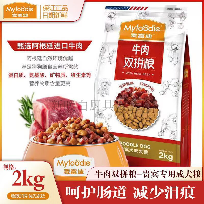 麦富迪(Myfoodie)麦富迪牛肉双拼狗粮小型犬成犬粮2kg泰迪贵宾雪纳瑞营养通用型4斤 牛肉双拼贵宾成犬粮2kg 实重以口味为准