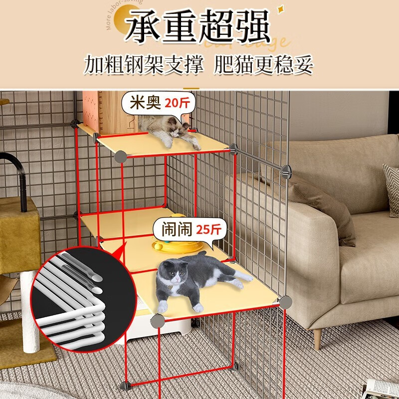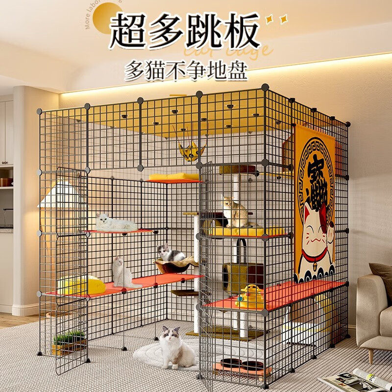 王多喵猫笼子超大号家用带厕所区一体猫咪别墅室内大空间猫柜宠物猫笼 【加粗加固】铁网大猫笼 【147*111*146厘米】4列4层3排