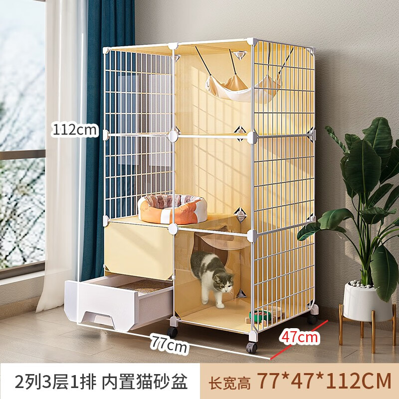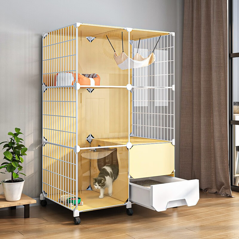 宠趣汇高清透明猫笼子大号带厕所一体自带封闭式猫砂盆宠物家用猫笼猫柜 高清透明【77*47*112】带猫砂盆 吃喝玩乐:自带续水猫碗 瞄舍款