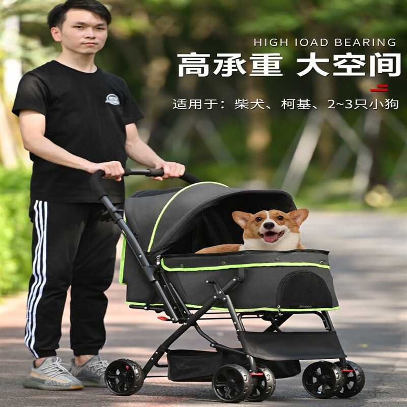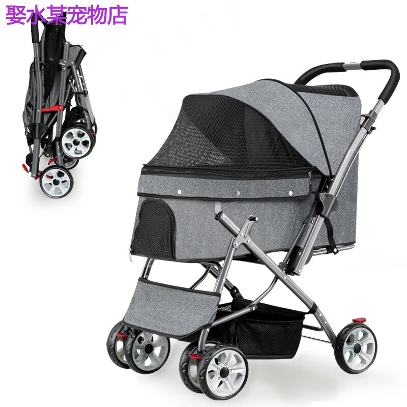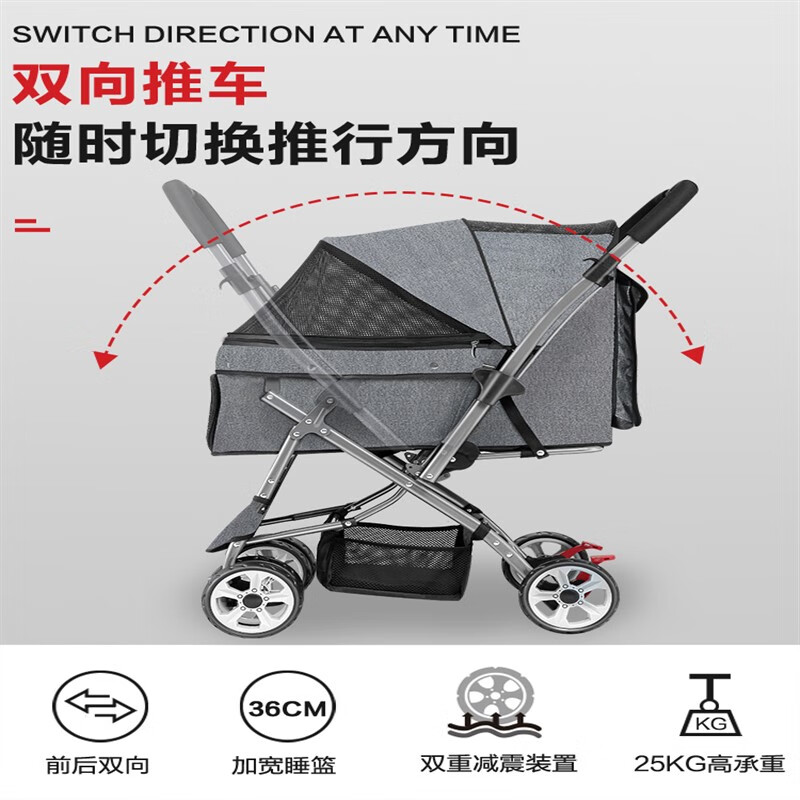 搭啵兔宠物推车轻便可折叠中大型犬狗狗手推车遛狗猫咪户外出双向多宠车 浅灰色中大型