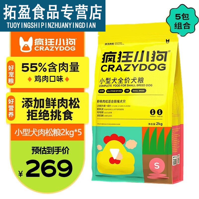 疯狂小狗小型犬肉松狗粮泰迪柯基贵宾比熊成犬幼犬通用犬粮拼派宠粮20斤装 粮10kg