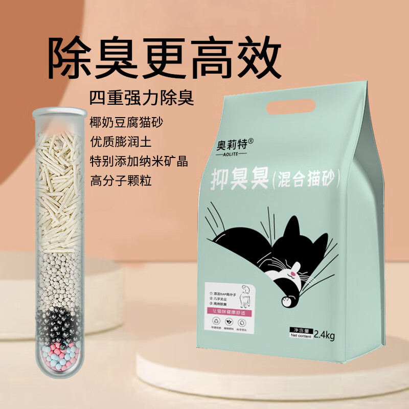 奥莉特抑臭臭混合猫砂豆腐砂除臭低尘可冲厕1.5mm豆腐猫砂猫用品 4袋