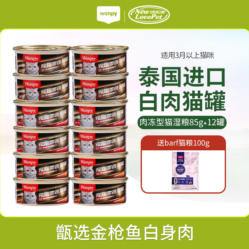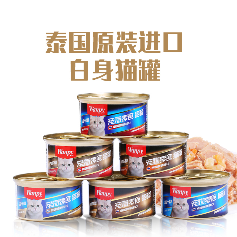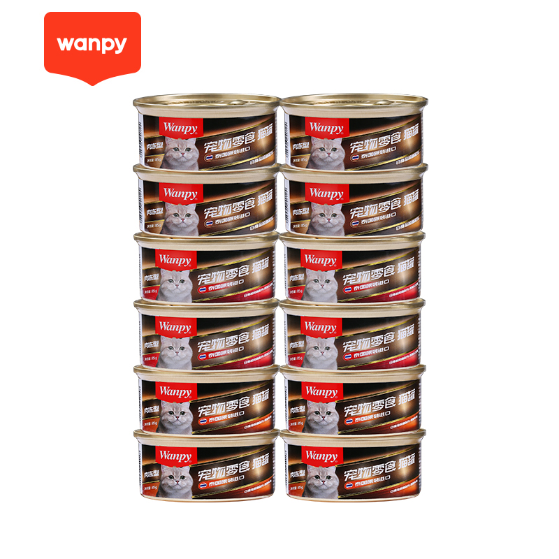 顽皮(Wanpy)猫零食 泰国原装进口白肉猫罐头猫湿粮 肉冻型混合口味85g*12罐
