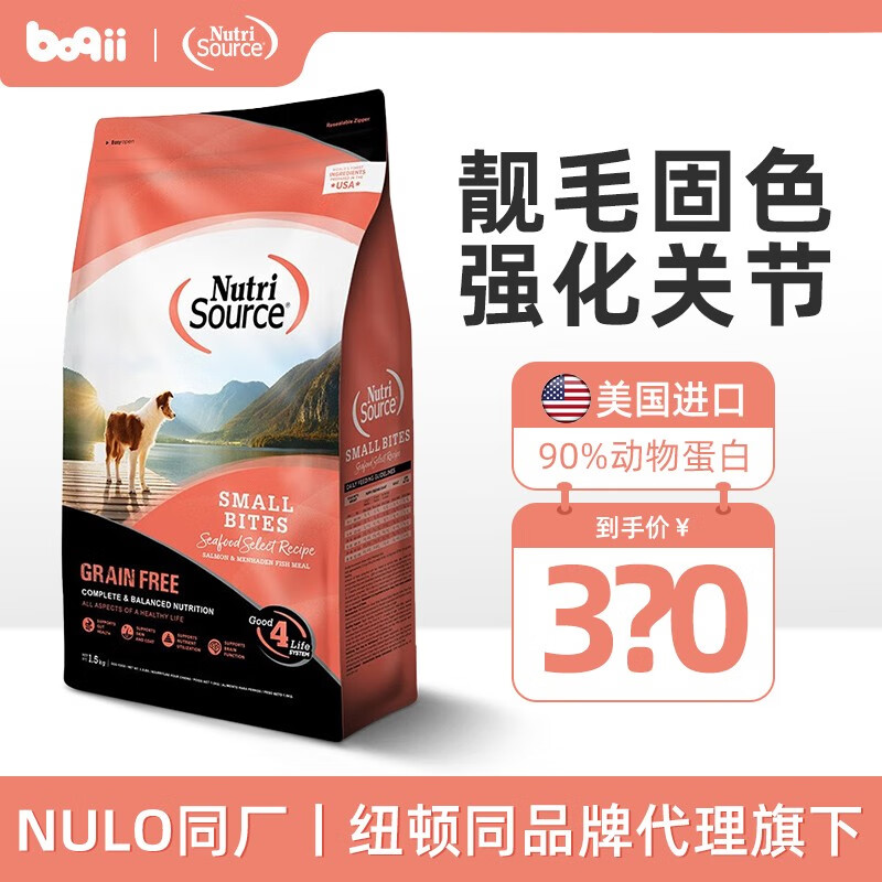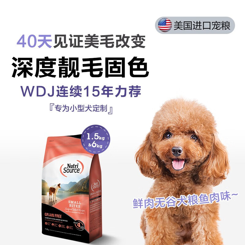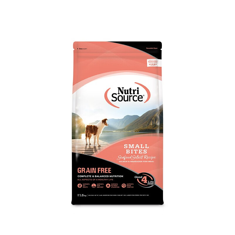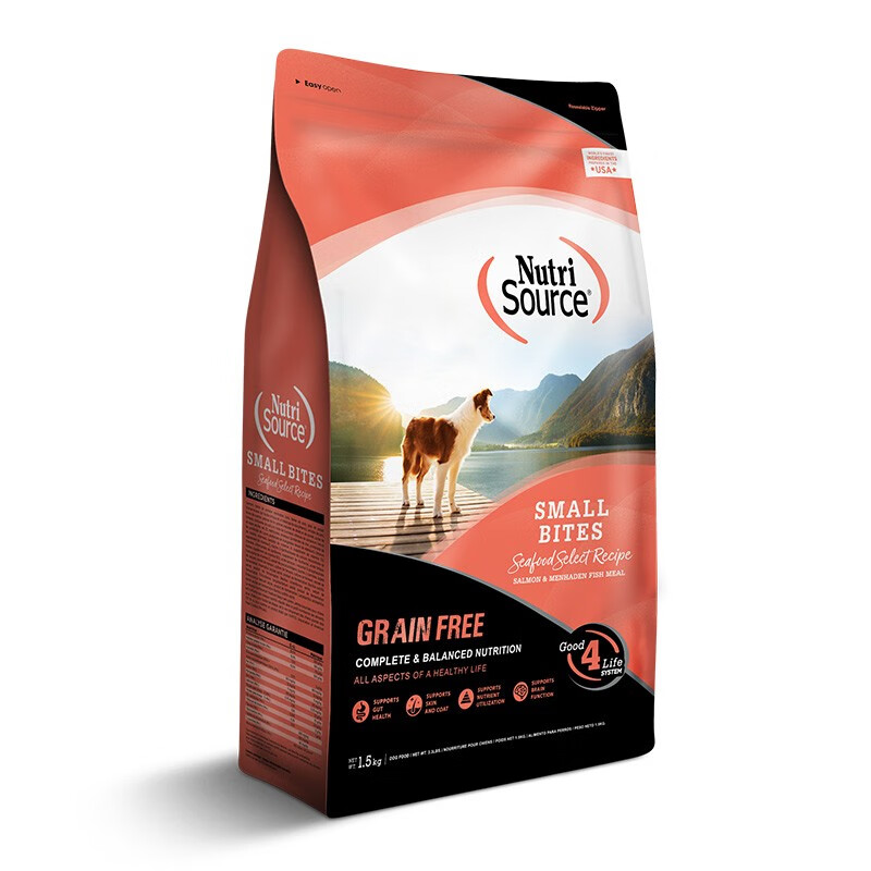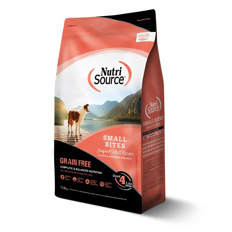 【客服有券】NutriSource新萃狗粮 美国进口小型犬全期犬粮成幼犬通用加拿大原装进口 【推荐】鱼肉味 6kg 小颗粒犬粮