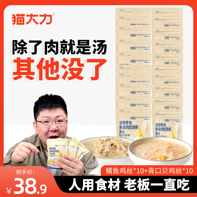 猫大力猫咪零食补水汤包猫粮猫罐头幼猫成猫增肥猫条湿粮主食猫饭 鲭鱼鸡丝 青口贝鸡丝混合装20包