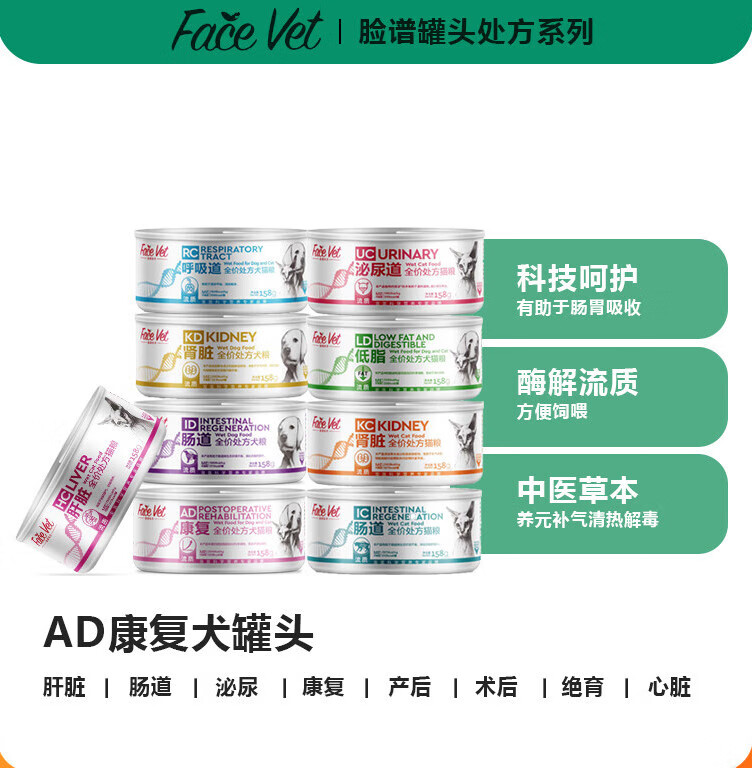 TAILTALK脸谱生物全价处方ad罐头怀孕术后绝育肾肝脏低脂泌尿道术后罐头 IC猫肠道 3罐