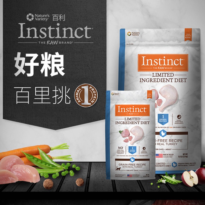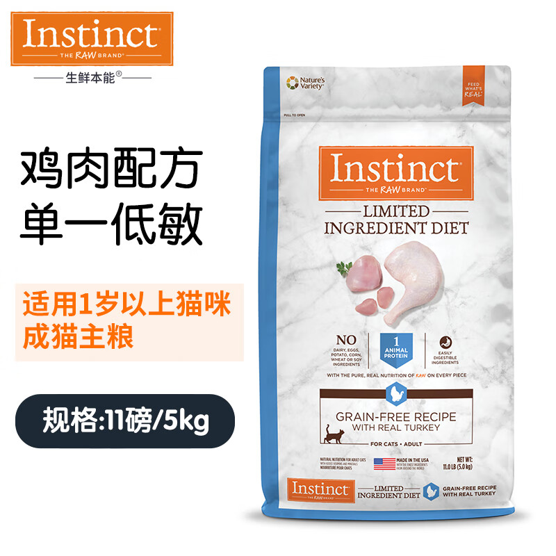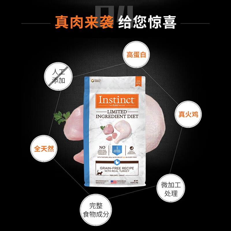 生鲜本能Instinct低敏进口无谷物单一火鸡肉减少过敏【适用于一岁以上的猫咪】 肠胃敏感专用成猫粮11磅/5kg
