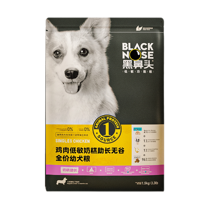 黑鼻头狗粮肠胃专用泰迪比熊博美边牧金毛成幼犬全价通用型 幼犬-奶糕助长1.5kg*8