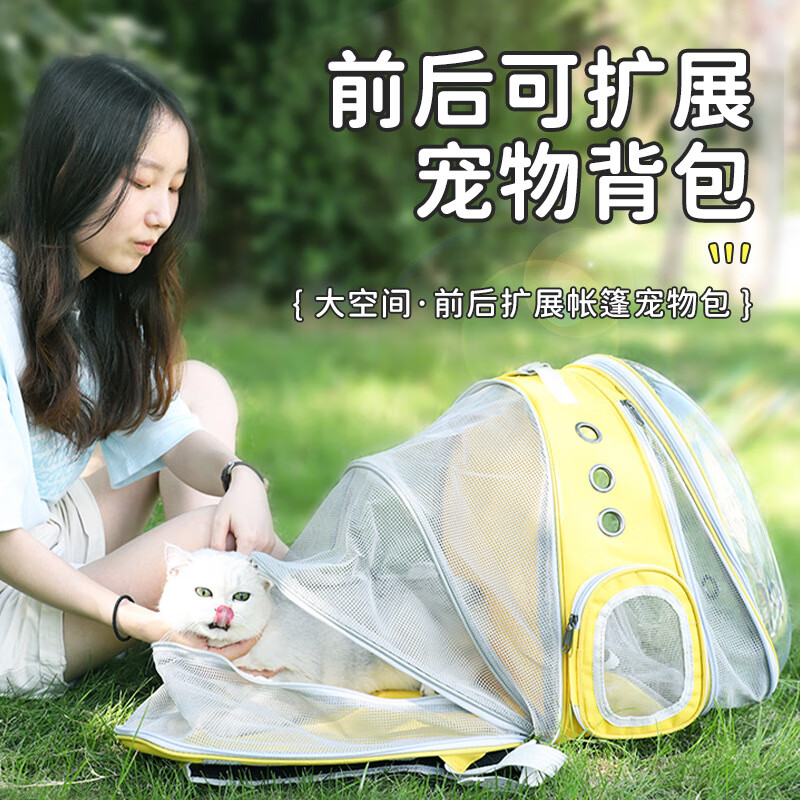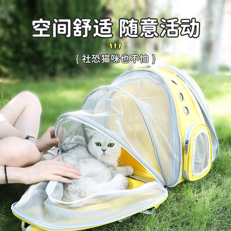 宠有为可拓展猫包外出便携加大大容量宠物包双肩透明狗狗背包手提透气猫 靓黄约【33*43*54cm】 约【33*43*54cm】