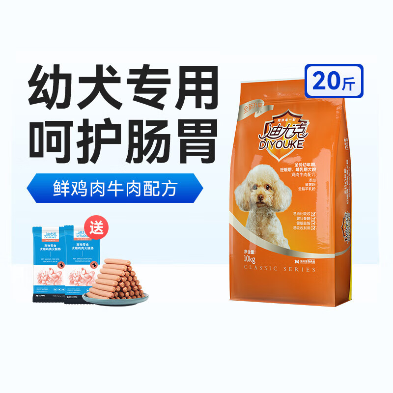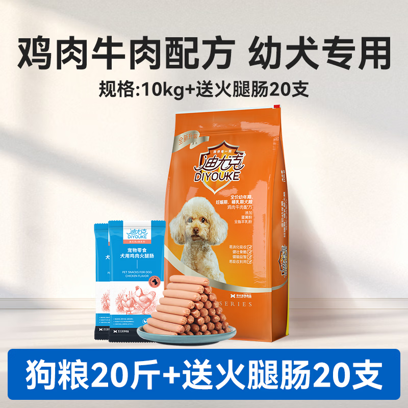 迪尤克狗粮幼犬专用粮10kg高钙金毛拉布拉多中大型犬通用型20斤装 幼犬通用( 火腿20根 10kg